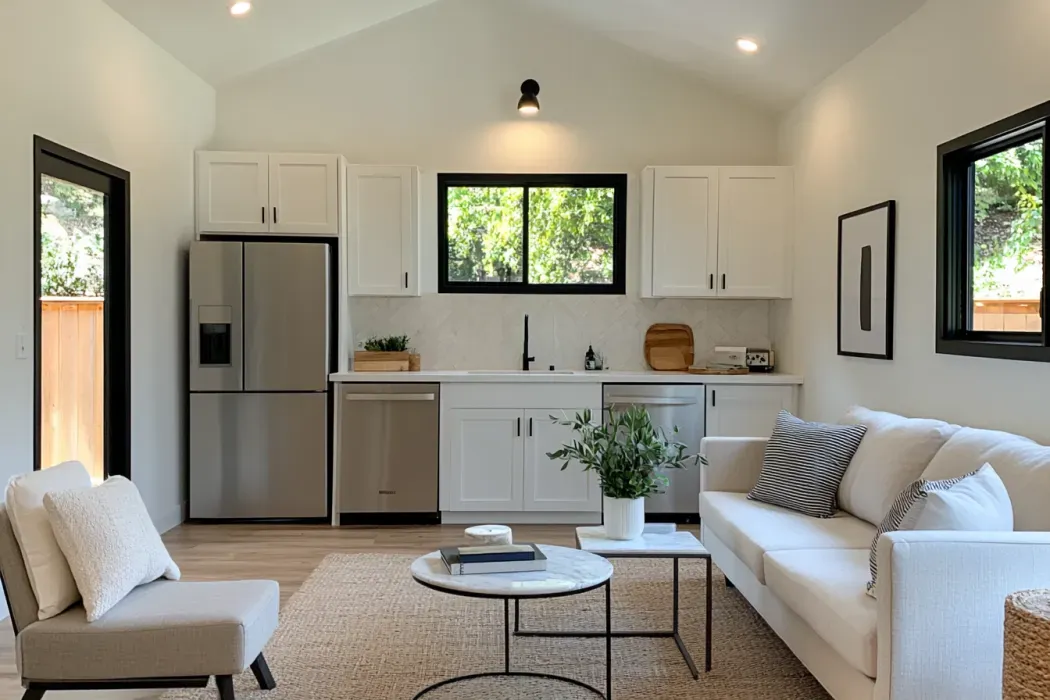 Don’t have a lot of room on your property but have a detached or attached garage that you think would make a great living space? We can also help you completely transform your garage into a finished, functional, and fully legal ADU on your property. This is a great option for a small rental space or a space for a parent or child to live nearby but still have their own independent space!